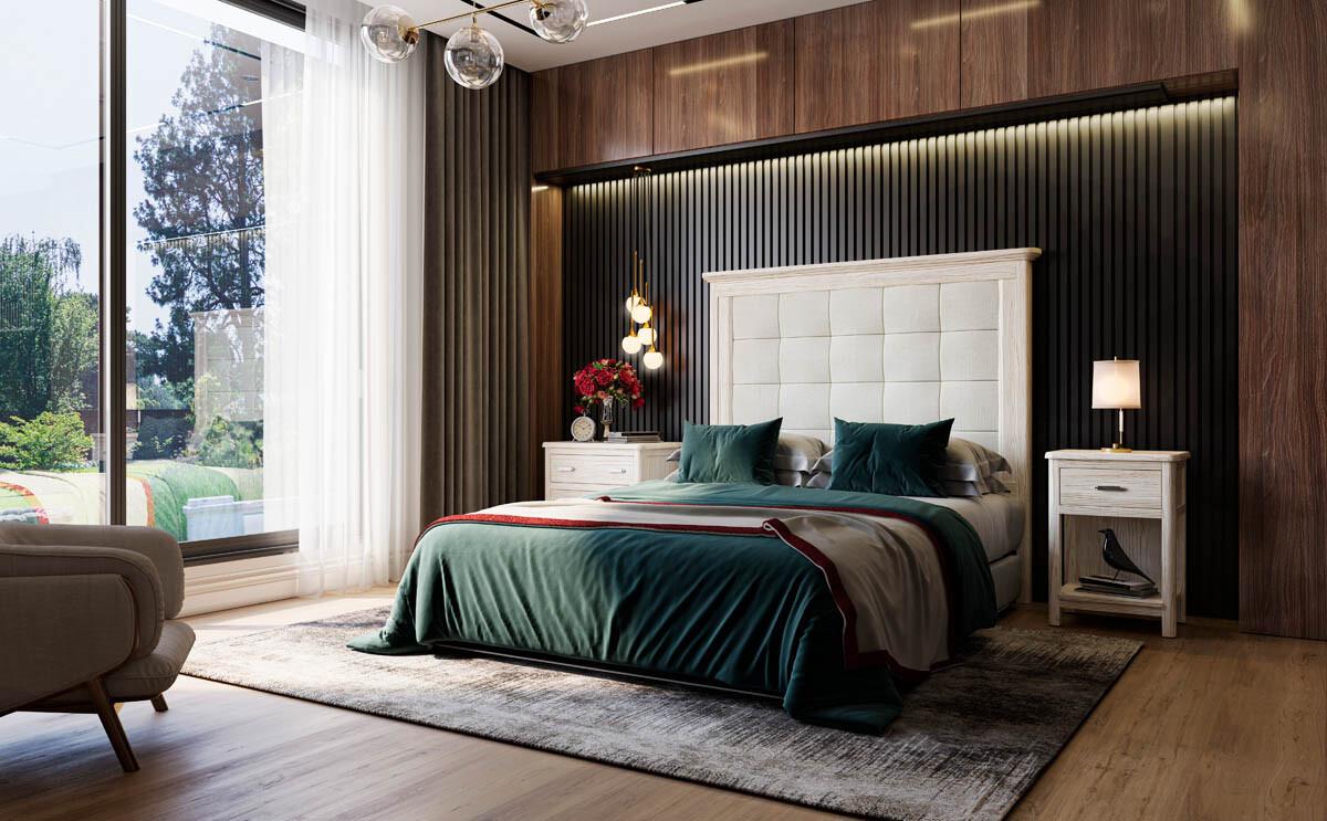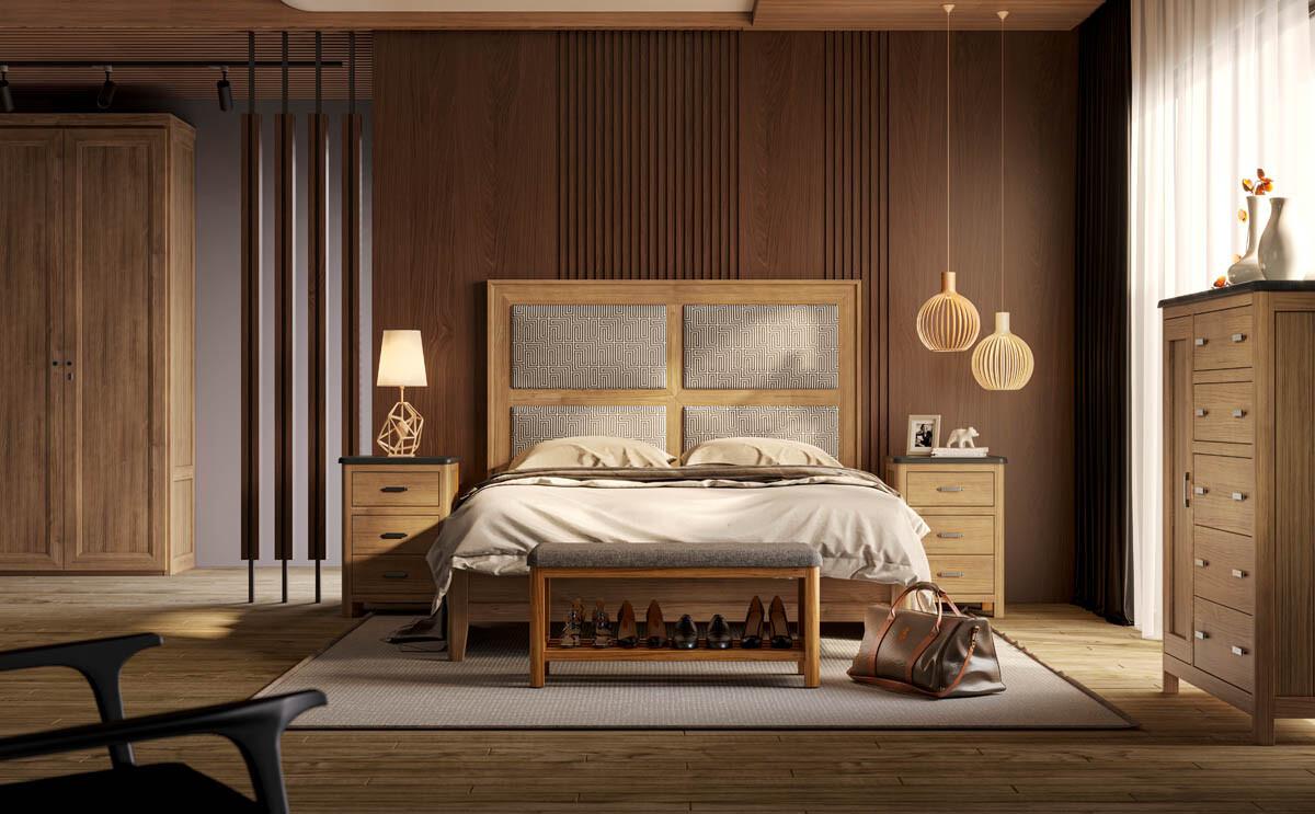 Dormitorio de alta calidad , maderas naturales con diferentes acabados .